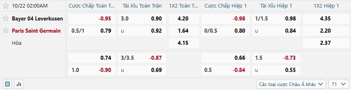 Tip kèo Châu Á hiệp 1 Bayer Leverkusen vs PSG
