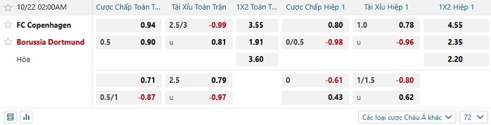 Tip kèo Châu Á full trận Copenhagen vs Dortmund