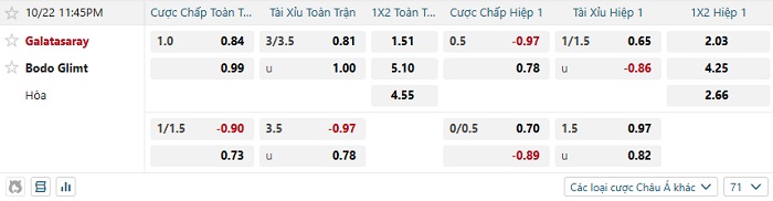 Tip kèo Châu Á full trận Galatasaray vs Bodo Glimt