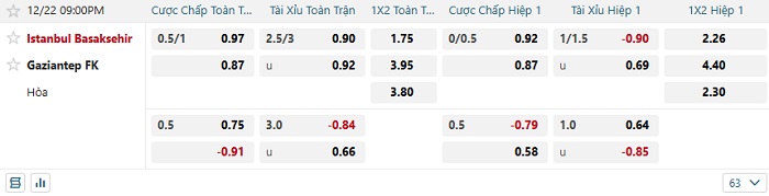 Tip kèo Châu Á full trận Basaksehir vs Gaziantep
