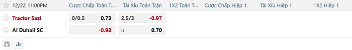 Tip kèo Châu Á hiệp 1 Tractor vs Al Duhail