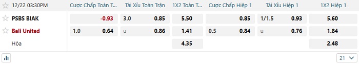 • Tip kèo cá cược Châu Á hiệp 1: Chọn PSBS BIAK +1/2