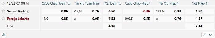 Tip kèo tỷ số Semen Padang vs Persija Jakarta