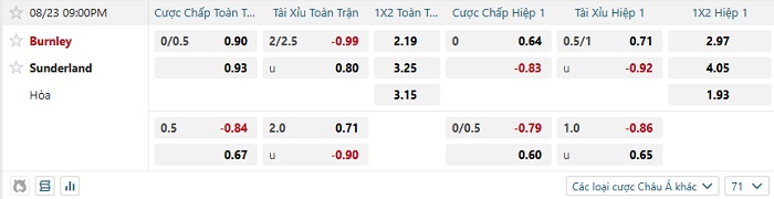 Tip kèo Châu Á hiệp 1 Burnley vs Sunderland