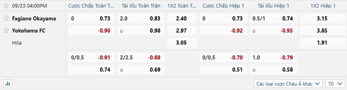 Tip kèo Châu Á hiệp 1 Fagiano Okayama vs Yokohama