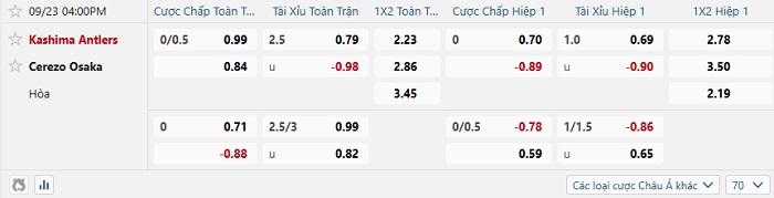 Tip kèo Châu Á hiệp 1 Kashima Antlers vs Cerezo Osaka
