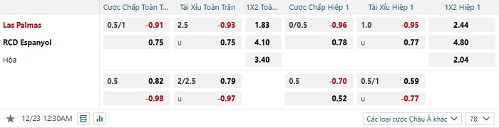 Tip kèo Châu Á full trận Las Palmas vs Espanyol