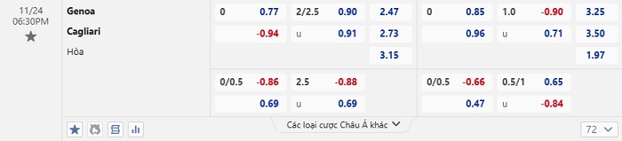 Tip kèo Châu Á full trận Genoa vs Cagliari