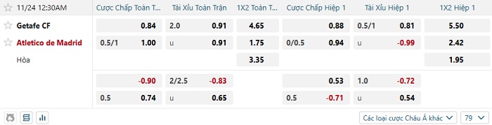 Tip kèo Châu Á hiệp 1 Getafe vs Atletico Madrid