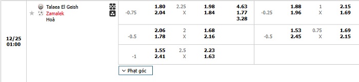 Tip kèo Châu Á hiệp 1 El Geish vs Zamalek