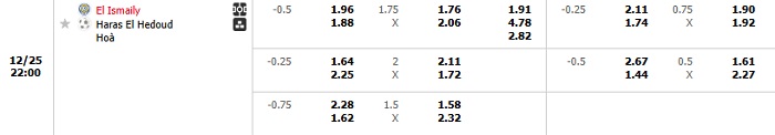 Tip kèo Châu Á hiệp 1 El Ismaily vs Haras El Hedoud