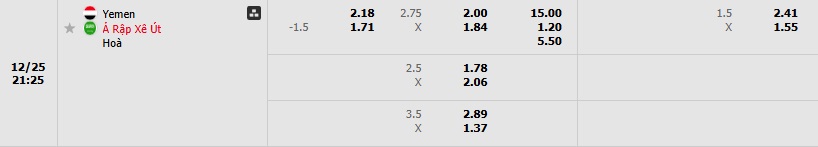 Tip kèo Châu Á hiệp 1 Yemen vs Ả Rập Xê Út