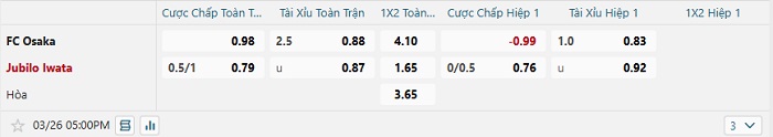 Tip kèo Châu Á full trận FC Osaka vs Jublio Iwata