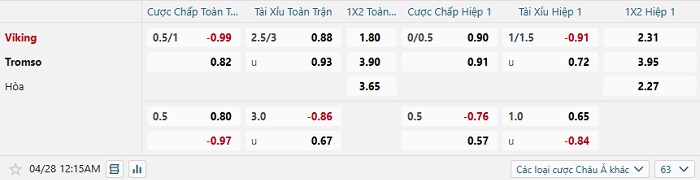 Tip kèo Châu Á hiệp 1 Viking vs Tromso