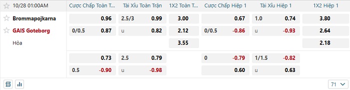 Tip kèo Châu Á hiệp 1 Brommapojkarna vs Goteborg