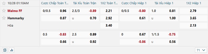 Tip kèo Châu Á full trận Malmo vs Hammarby