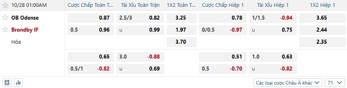 Tip kèo Châu Á hiệp 1 Odense vs Brondby