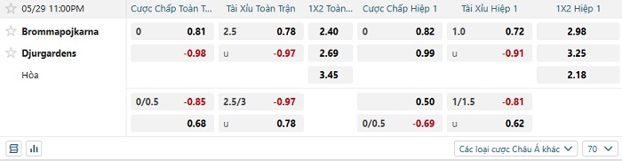Tip kèo Châu Á full trận Brommapojkarna vs Djurgardens