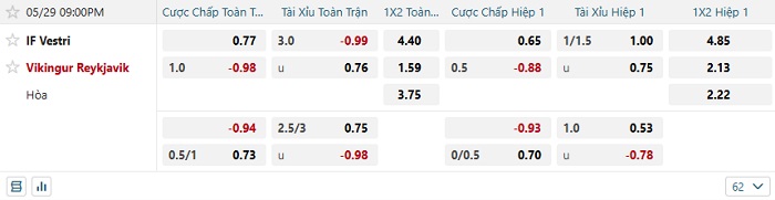 Tip kèo Châu Á hiệp 1 Vestri vs Vikingur