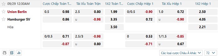 Tip kèo Châu Á full trận Union Berlin vs Hamburger