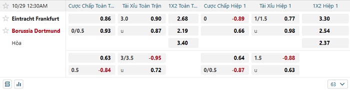 - Dự đoán tỷ số hiệp 1: Frankfurt 0 – 0 Dortmund