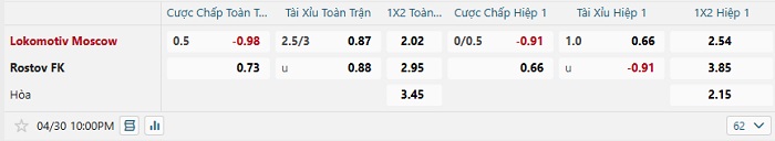 Tip kèo Châu Á hiệp 1 Lokomotiv Moscow vs Rostov