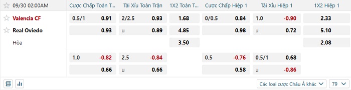 Tip kèo Châu Á hiệp 1 Valencia vs Oviedo