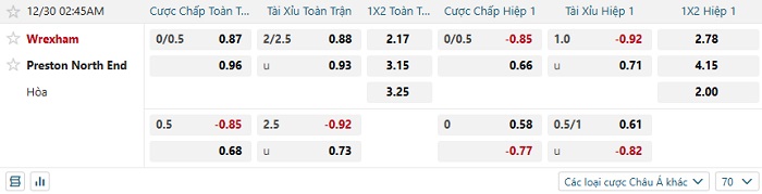 Tip kèo Châu Á full trận Wrexham vs Preston