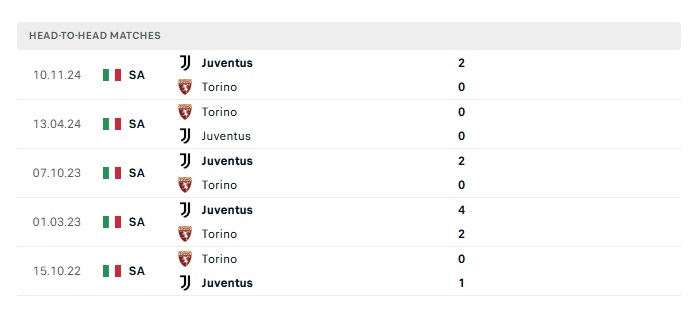 • Kèo tỷ số H2 Torino vs Juventus: 1-2