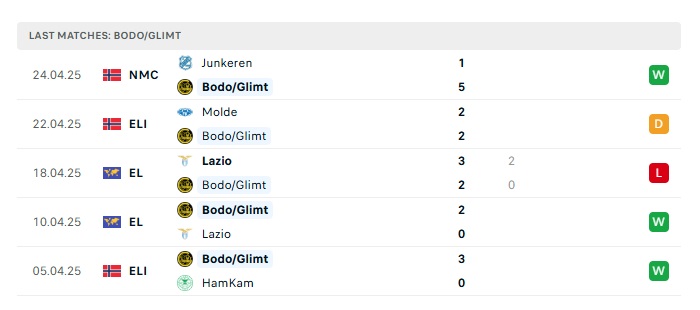 Phong độ gần đây Tottenham vs Bodo Glimt