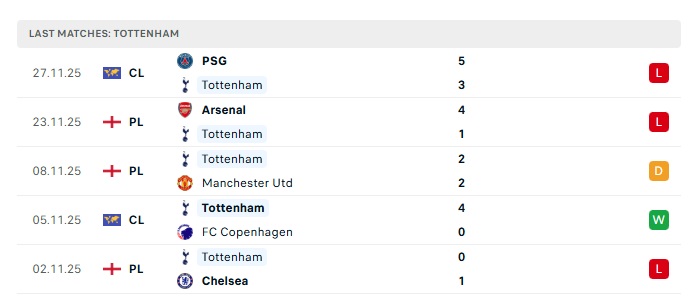 • Phong độ gần đây Tottenham
