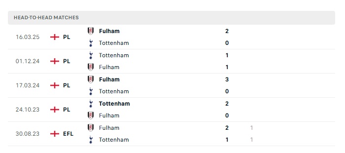 Lịch sử đối đầu Tottenham vs Fulham