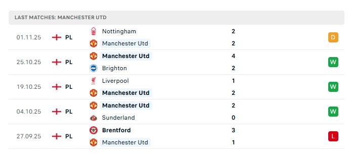 - Phong độ gần đây Man Utd