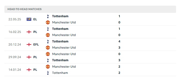 Phong độ gần đây Tottenham vs Man Utd