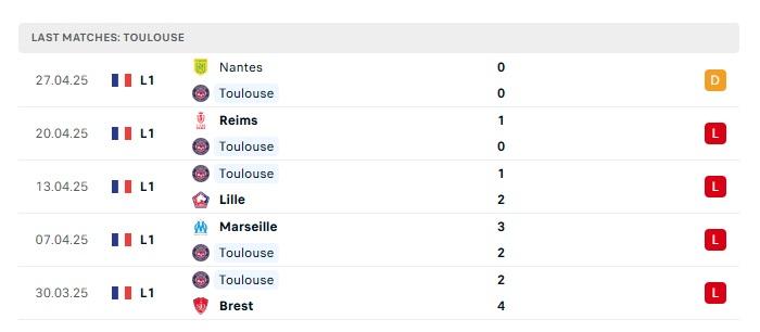 - Phong độ gần đây Toulouse