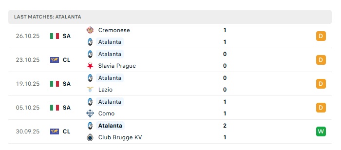 - Phong độ gần đây Atalanta