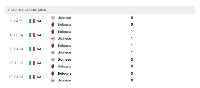 - Kèo tỷ số H2 Udinese vs Bologna: 0-1