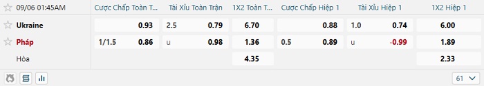 Soi kèo châu Á, kèo Ukraina vs Pháp