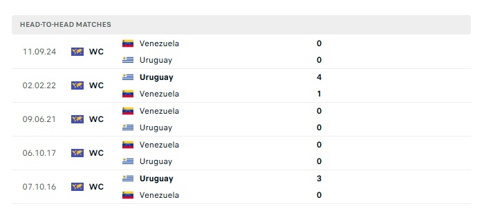 Phong độ gần đây Uruguay vs Venezuela