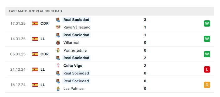 - Phong độ gần đây Real Sociedad