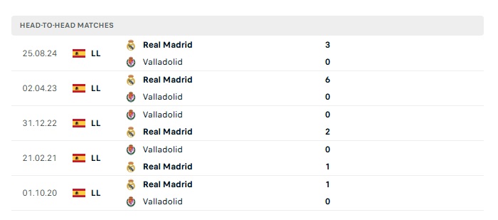 Lịch sử đối đầu Valladolid vs Real Madrid