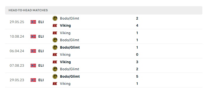 Lịch sử đối đầu Viking vs Bodo Glimt