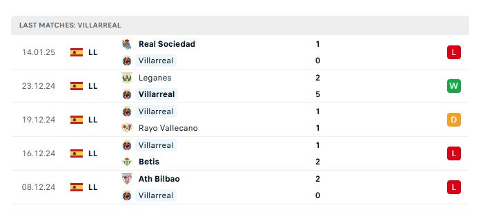 • Phong độ gần đây Villarreal