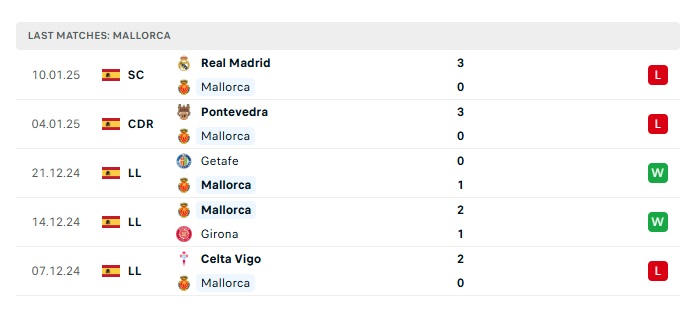• Phong độ gần đây Mallorca