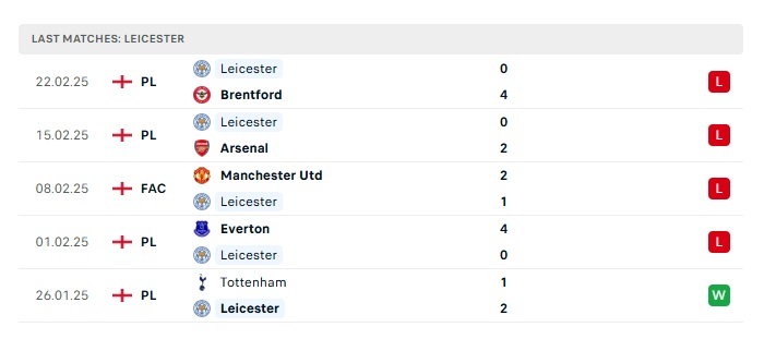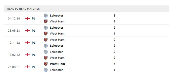 Lịch sử đối đầu West Ham Utd vs Leicester City