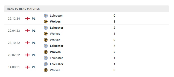 - Kèo tỷ số H2 Wolves vs Leicester City: 2-0